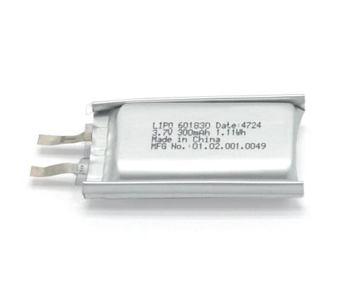 Custom LiPo 601830 3.7V 300mAh Battery for MP3, Wearables & IoT Devices