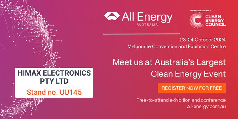 We’re thrilled to announce that HIMAX ELECTRONICS PTY LTD will be participating in All Energy Australia 2024! This year’s exhibition will take place on October 23-24 at the Melbourne Convention and Exhibition Center, and we invite you to stop by our booth, Stand UU145.